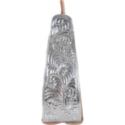 The Cashel engraved slanted stirrup features an offset design engineered to reduce stress on the rider’s knees and back by keeping constant contact with the foot to the tread for stability and balance. Made of heavy gauge aluminum construction with side engraving detail. 3″x5.5″.