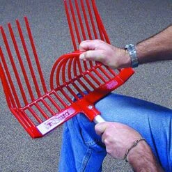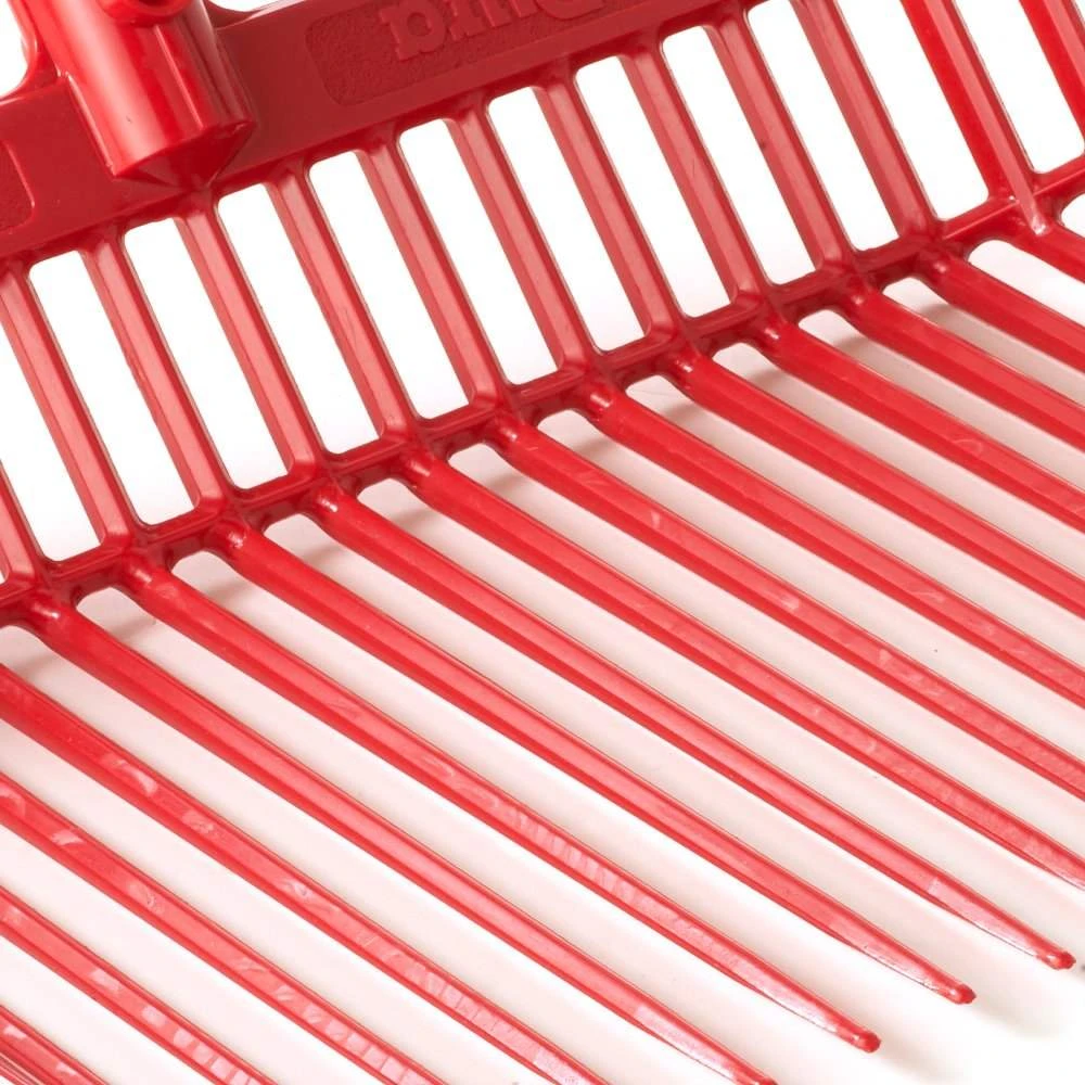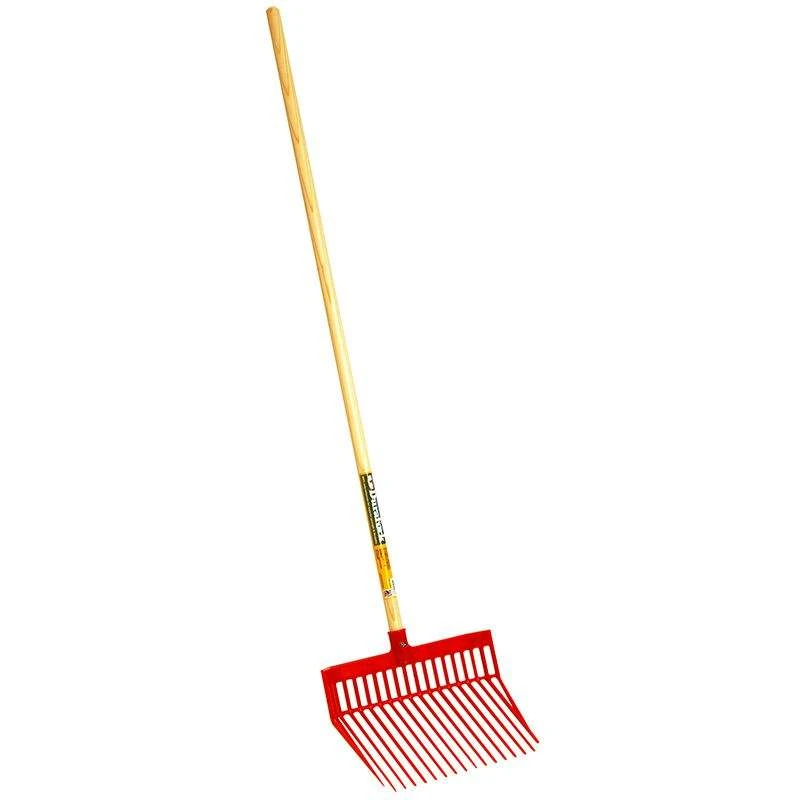 This is the original Little Giant DuraFork bedding fork that is a fixture in stables and barns everywhere. Manufactured from extra-strong 100 percent polycarbonate to provide super strength and flexibility. Designed for long-lasting use around the farm, ranch, and home. Specially designed tines are uniquely angled to provide easy manure pickup with less spilling. Nylon locknut secures the 52 inch long by 1.125 inch diameter hardwood handle. Fork head is 13.125 inch long by 15.125 inch wide. Red fork head.