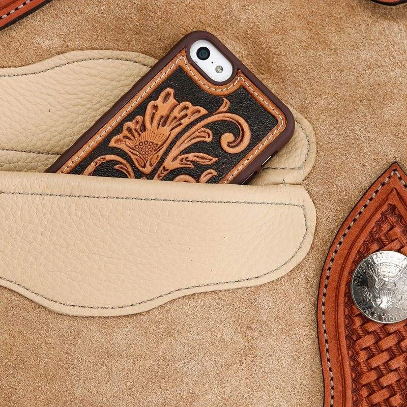 These parchment chinks are super handy. They have a welt pocket and a tie string ring.