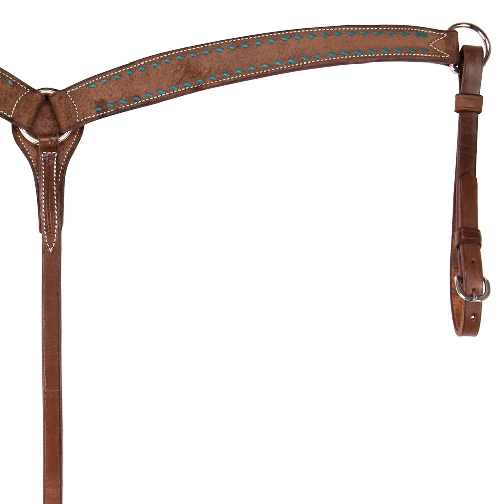 One of the most traditional looks on the market, this roughout breast collar really brings out the a classic look without being flashy. The turquoise buckstitching shines very well with the chocolate finish. This breast collar is also ready to use, it is equipped with quality Dee Rings and Tugs.