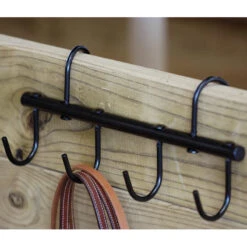 Tack Rack welded steel rack perfect for keeping bridles or halters organized. Portable design allows it to hang over a stall wall or the side of a trailer. Hooks fold back flat when not in use.