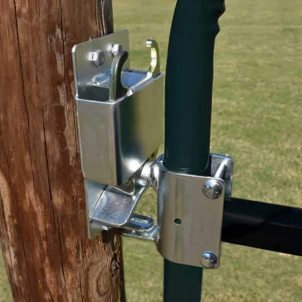 This is a simple, ambidextrous one-handed operational manual operated gate latch. Opens gate from inside or outside. Zinc-coated sturdy materials for long lasting performance. This latch can be locked (lock is not included). The gate mounting hardware is include however, the post mounting hardware is not include. Small latch is for 1.25in to 1.5in OD round tube gates. Large latches are for 1 5/8in – 2in OD round tube gates. Made in China.