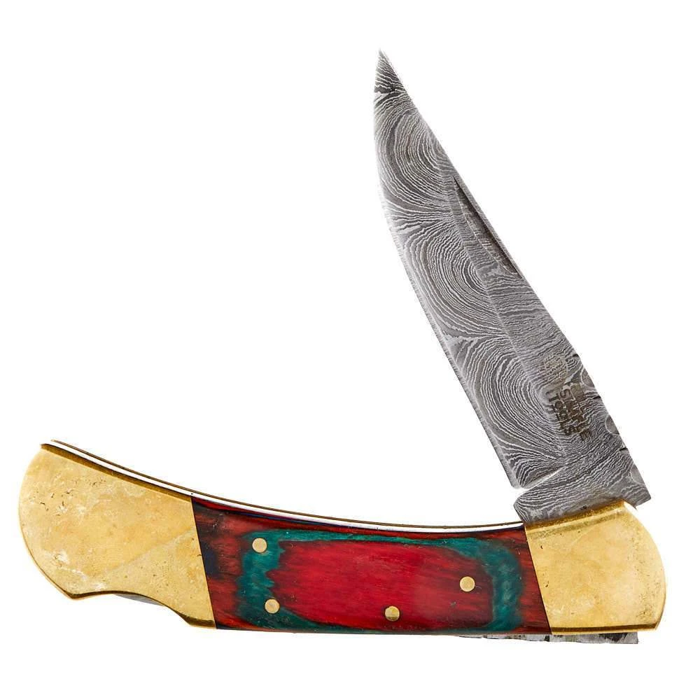 Take the right tools with you on your next adventure. Having the right gear, means having gear that does not fail. This brand of tool is for the American spirited adventurer! This is a folding clip point damascus blade knife made in Kemah, Texas, USA. This Bone Daddy Skinner Damascus clip point model is super sharp, it is made of damascus steel with a hardness of 1095 58; it is a liner lockback folding blade with a wood handle and pocket clip. This travel gear is great for hunting, fishing, camping or, as needed. Rill Simple Tools are manufactures of high quality outdoor tools and travel accessories. 022