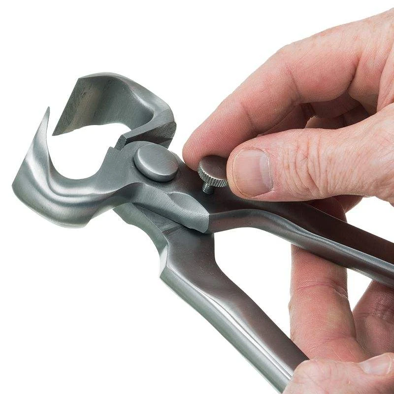 Designed to trim away excess hoof wall. The 14” nipper is considered the workhorse of the nippers. It is especially useful when working on hard hooves and great for all breeds. Drop forged from chrome vanadium steel. Cutting edge double beveled to eliminate nicking and bending. Aligned and sharpened by hand for accurate trimming and longer blade life. 14” handles. 2 ” wide x 1” deep head.