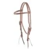 The oiled canyon rose harness leather undergoes a process of oil dipping, saddle butter dressing, and hand rubbing to enhance its performance. This is complemented by the Weaver Leather exclusive engraved heel buckles and loops, which feature black accents. The water tie bit ends complete the overall design.